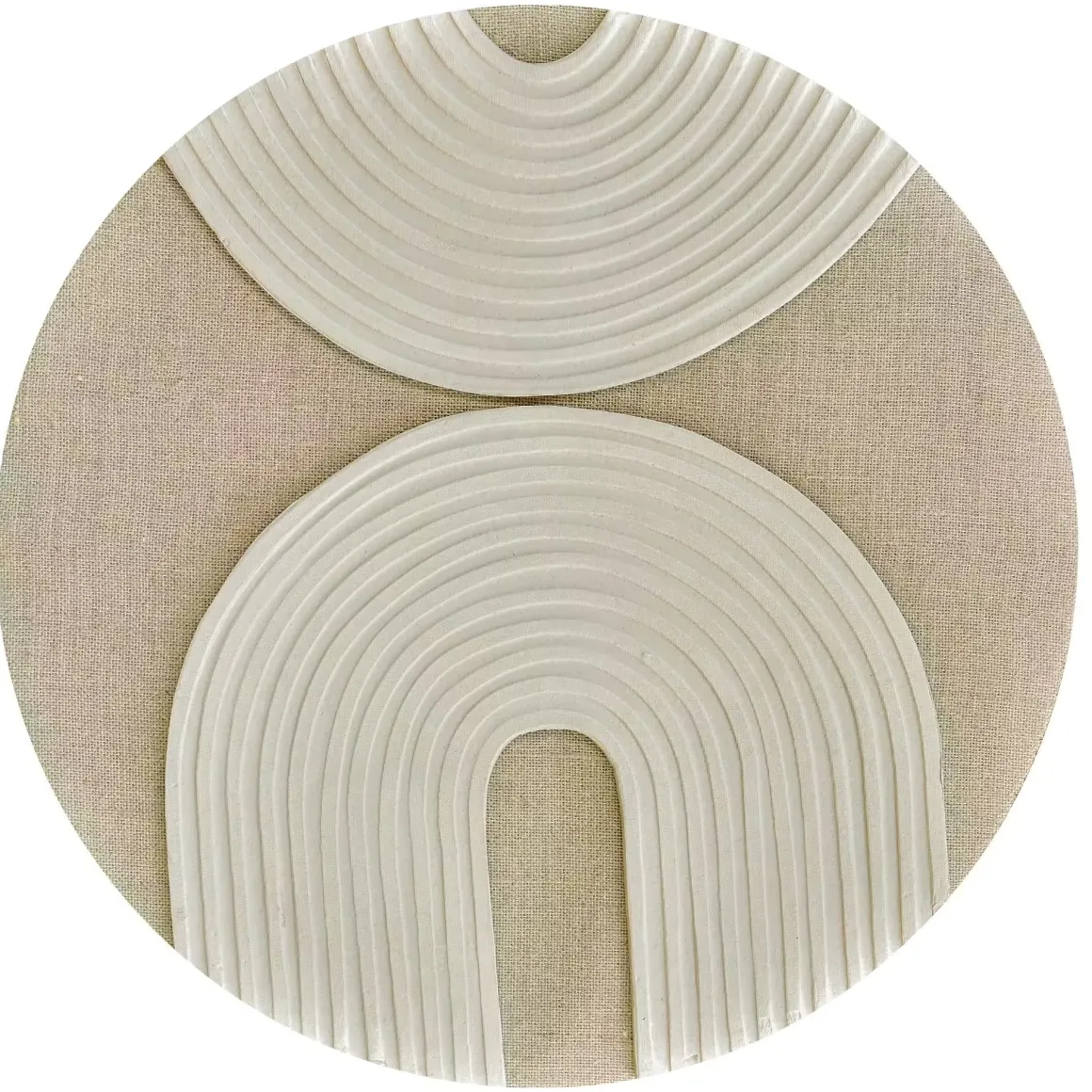 De ronde 3d wanddecoratie is in de kleuren taupe beige en hebben een prachtige afwerking.