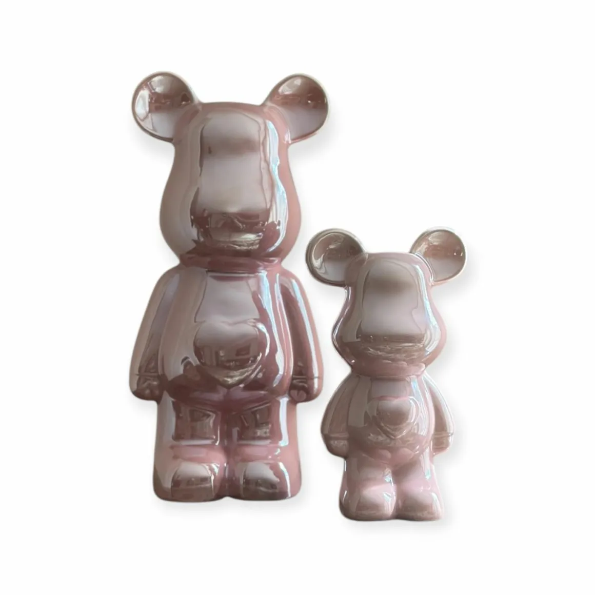 Beer beeld roze parelmoer hart in twee maten