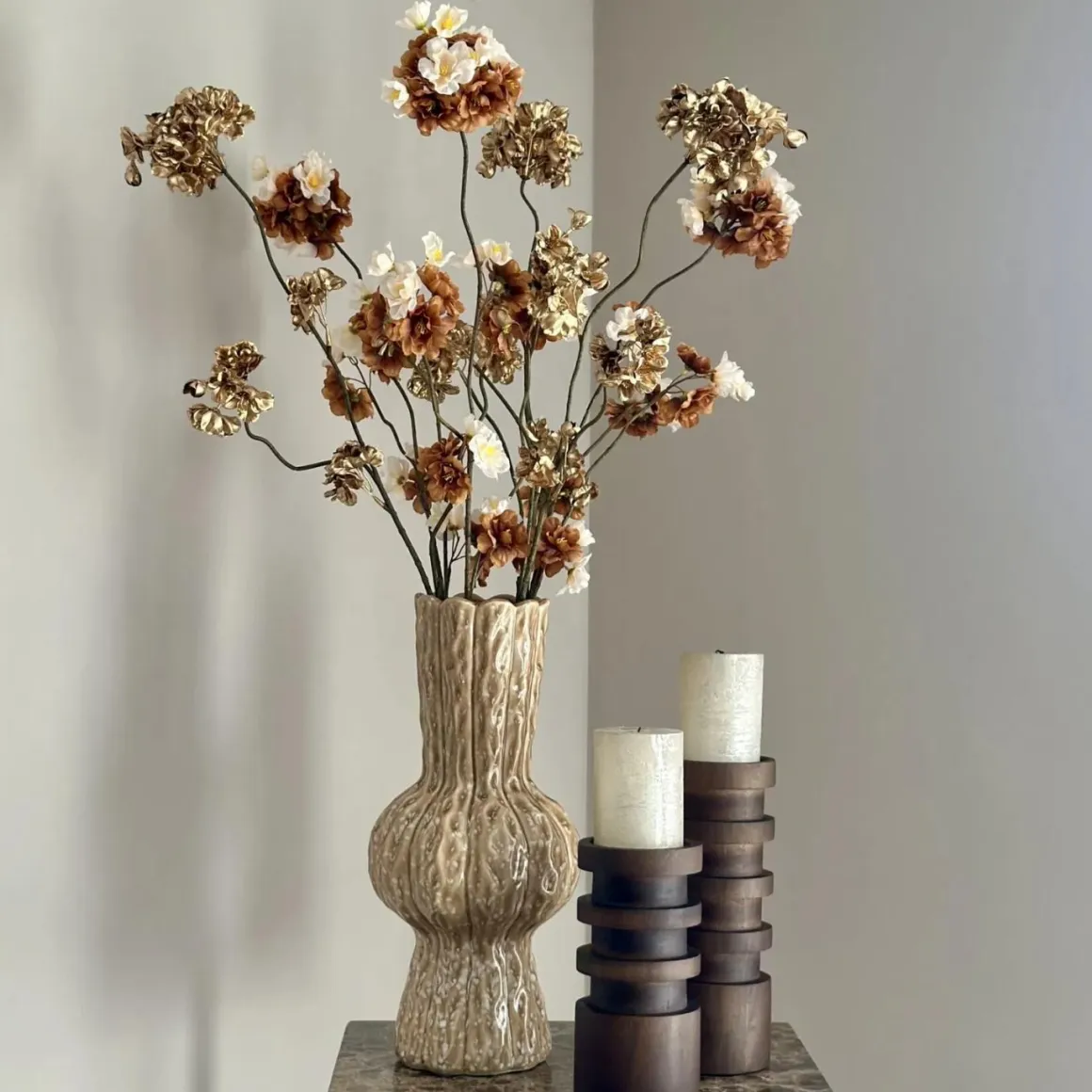 Complete decoratie set vaas met kandelaren bruin goud