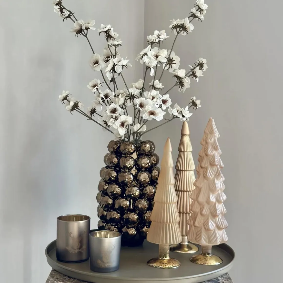Gouden Parfum vaas met luxe Zijden Bloemen boeket goud zwart