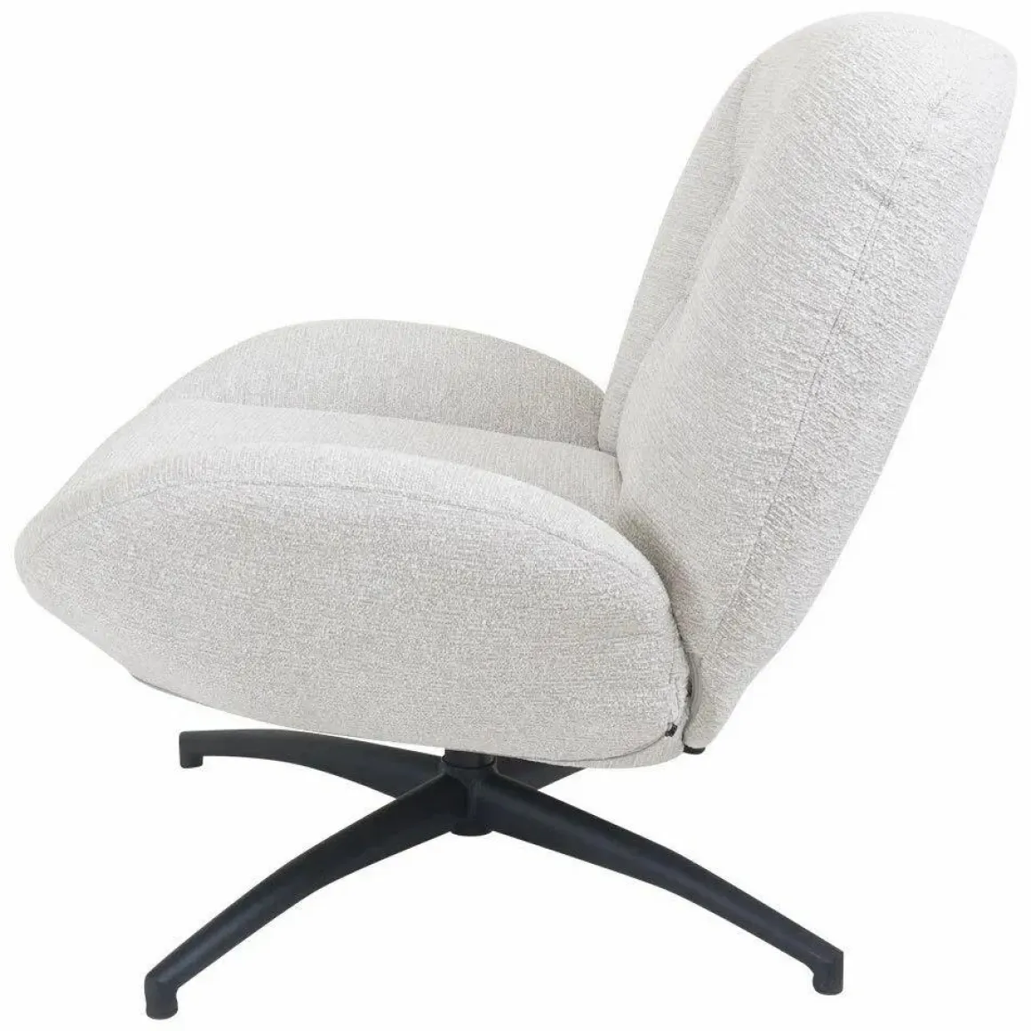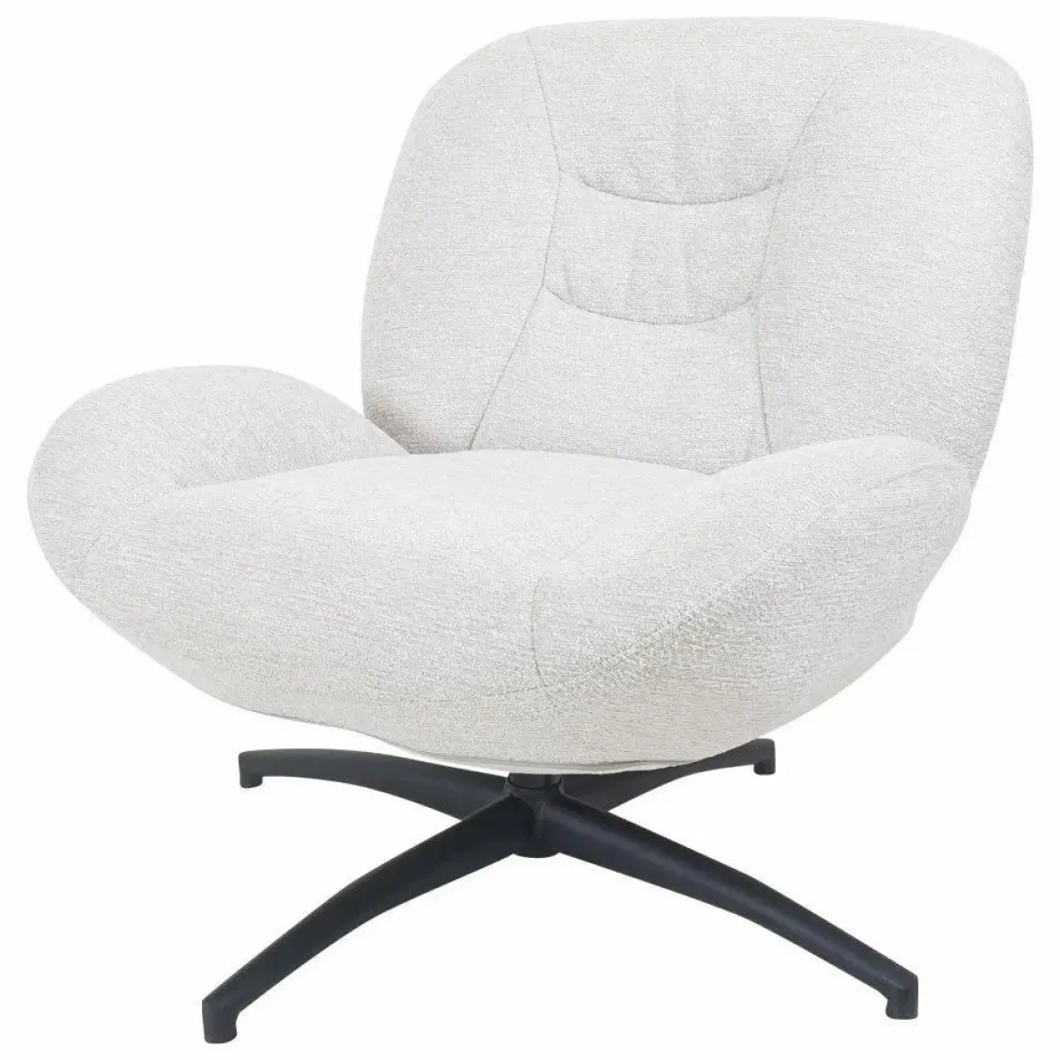 Fauteuil George is een perfecte combinatie van elegantie en comfort. Met de ronde vormen is deze fauteuil een echte eyecatcher in ieder interieur. De fauteuil is bekleed in een neutrale, lichte kleur die moeiteloos in diverse woonstijlen past. Het zwarte metalen onderstel met een 360° graden draaifunctie zorgt voor extra functionaliteit. Fauteuil George is perfect voor de woonkamer, leeshoek of lounge!