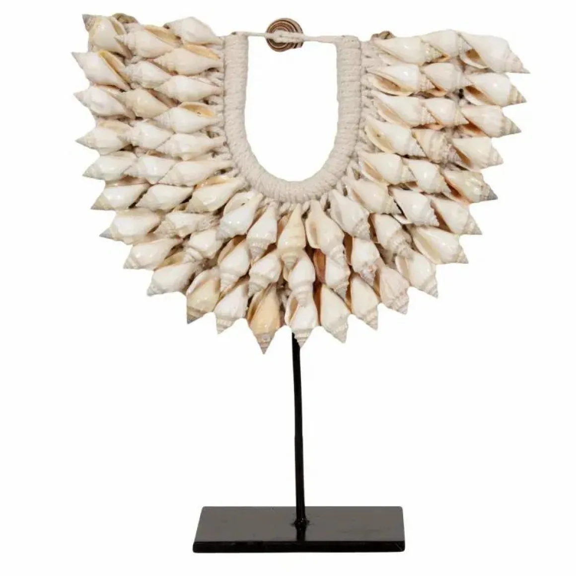 Het ornament staat op een chique metalen voet standaard, wat zorgt voor extra stabiliteit en stevigheid. De metalen voet standaard heeft een zwarte kleur. De combinatie van de delicate schelpen en het strakke design van de voet standaard geeft het geheel een luxe uitstraling. Hierdoor past het perfect in verschillende interieur stijlen. Bijvoorbeeld bij een hotel chique of minimalistisch interieur.