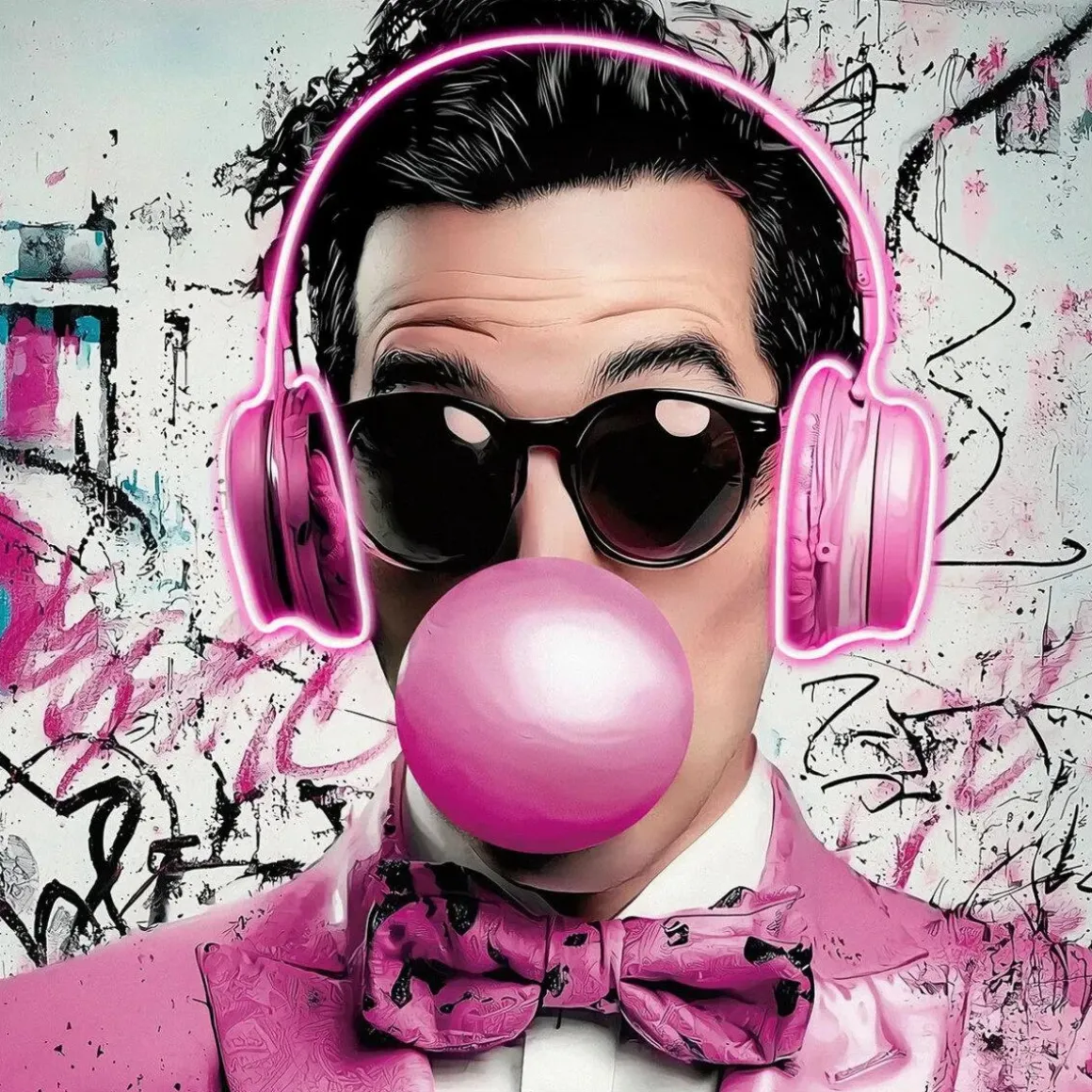 Glasschilderij met LED verlichting en lijst 80x80cm Roze man