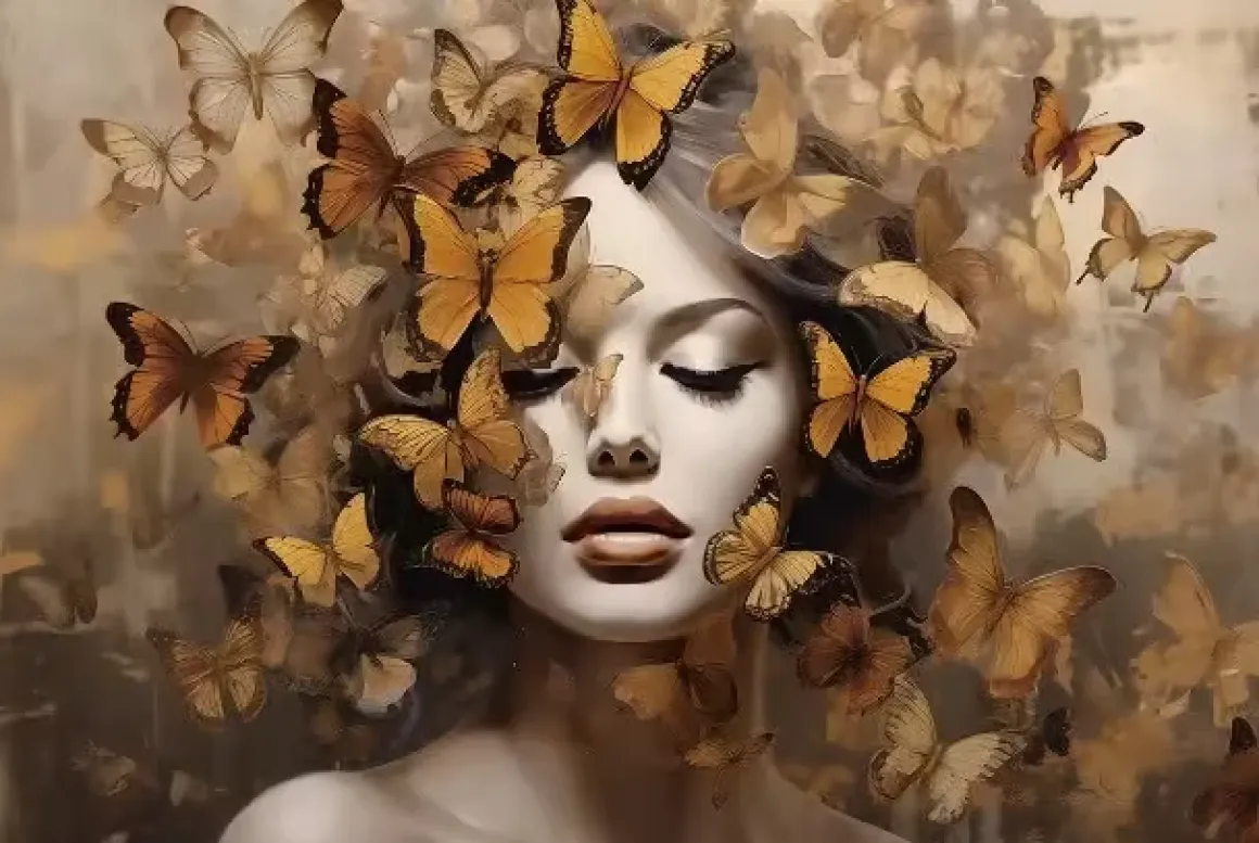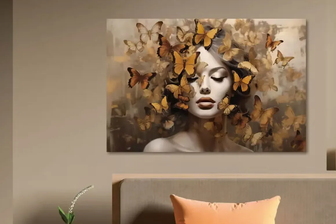 Het glasschilderij “Vrouw met Vlinders” in de tonaliteiten bruin en oranje is een waar kunstwerk dat met zorg is vervaardigd. Met een afmeting van 120×80 cm past dit schilderij perfect in verschillende woonruimtes, van een serene woonkamer tot een inspirerende studeerkamer. Dit hoogwaardige glasschilderij is een harmonieuze combinatie van elegantie en expressie, waarbij de afbeelding van een vrouw vergezeld wordt door delicate, kleurrijke vlinders.