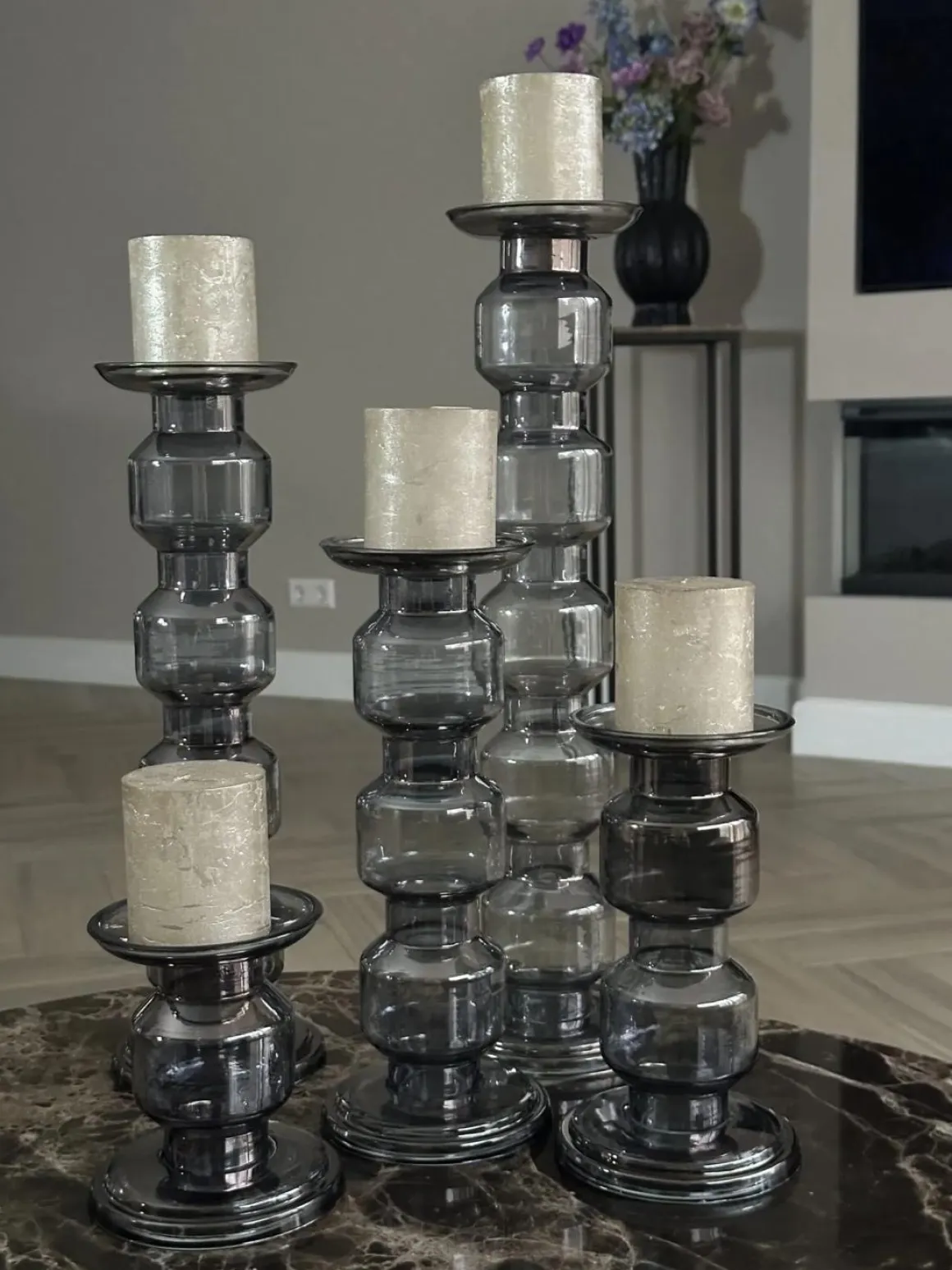 Ben je op zoek naar een elegante touch voor jouw interieur? Dan zijn de glazen bestseller kandelaren in grijs smoke iets voor jou! Voor het eerst beschikbaar in deze prachtige kleur, stralen deze kandelaren pure chique uit.