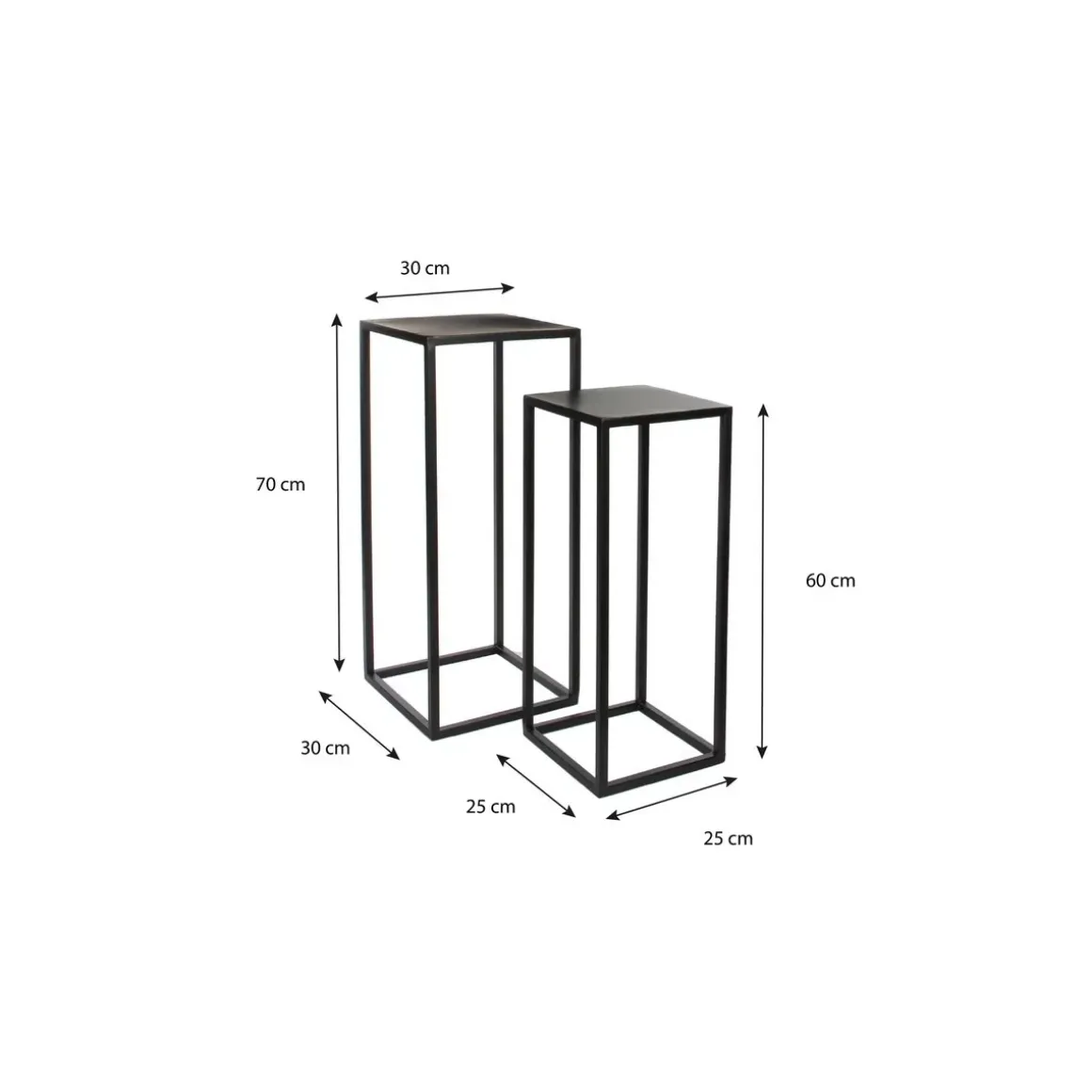 De afmetingen zijn L25 x B25 x H60 cm en L30 x B30 x H70 cm.