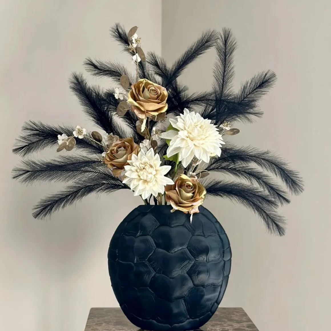 Luxe blikvanger: grote zwarte vaas met zijden bloemen