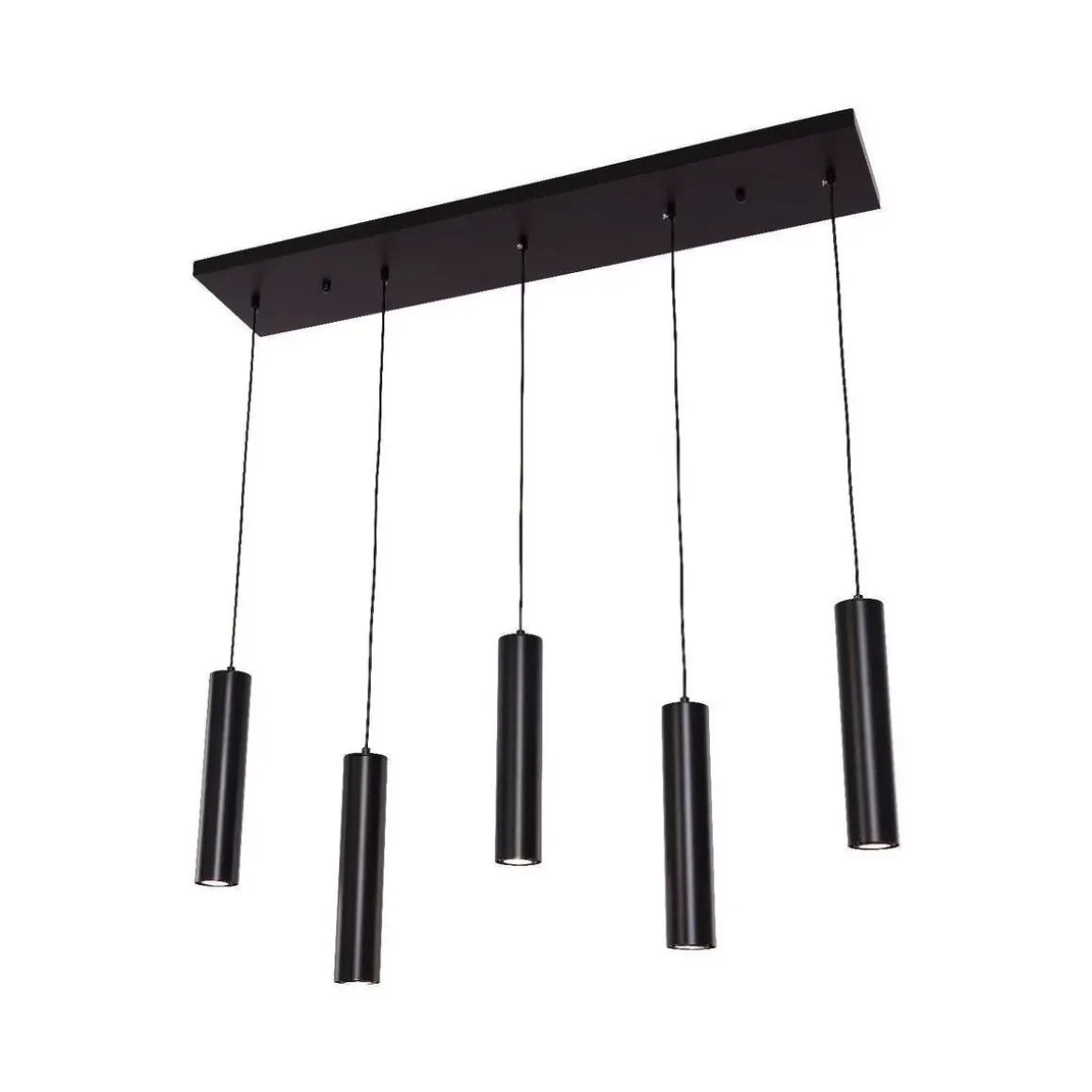 Hanglamp Cilinder Eettafel 5 | Black | Verstelbare Hoogte | Inclusief GU10 LED 3000KDe Hanglamp Cilinder Eettafel 5 Black is een stijlvolle en functionele toevoeging aan je interieur. De lamp wordt geleverd met vijf energiezuinige GU10 LED-lampen (3000K), die zorgen voor een warm witte lichtkleur en een sfeervolle uitstraling. De hoogte is verstelbaar tot 150 cm, zodat je de perfecte verlichting boven je eettafel of keukeneiland kunt creëren. De stevige plafondplaat van 20×100 cm biedt een solide basis en geeft een luxe uitstraling. Deze hanglamp past perfect in moderne en industriële interieurs. Kenmerken van het product: Aantal lichtpunten: 5 cilinders Inclusief lichtbron: 5x GU10 LED (3000K warm wit) Kleur: Black (zwart, mat afgewerkt) Afmeting plafondplaat: 20 x 100 cm Hoogte: Verstelbaar tot 150 cm Stijl: Modern, industrieel Geschikt voor: Eettafels, keukeneilanden, woonkamers Materiaal: Metaal Energiezuinig: LED-verlichting met lange levensduur Voordelen van het product: Klaar voor gebruik: Inclusief energiezuinige GU10 LED-lampen Warm wit licht (3000K): Zorgt voor een gezellige sfeer In hoogte verstelbaar: Pas de hoogte eenvoudig aan je wensen aan Stijlvol ontwerp: Past bij diverse interieurstijlen Eenvoudige installatie: Inclusief bevestigingsmateriaal en handleiding