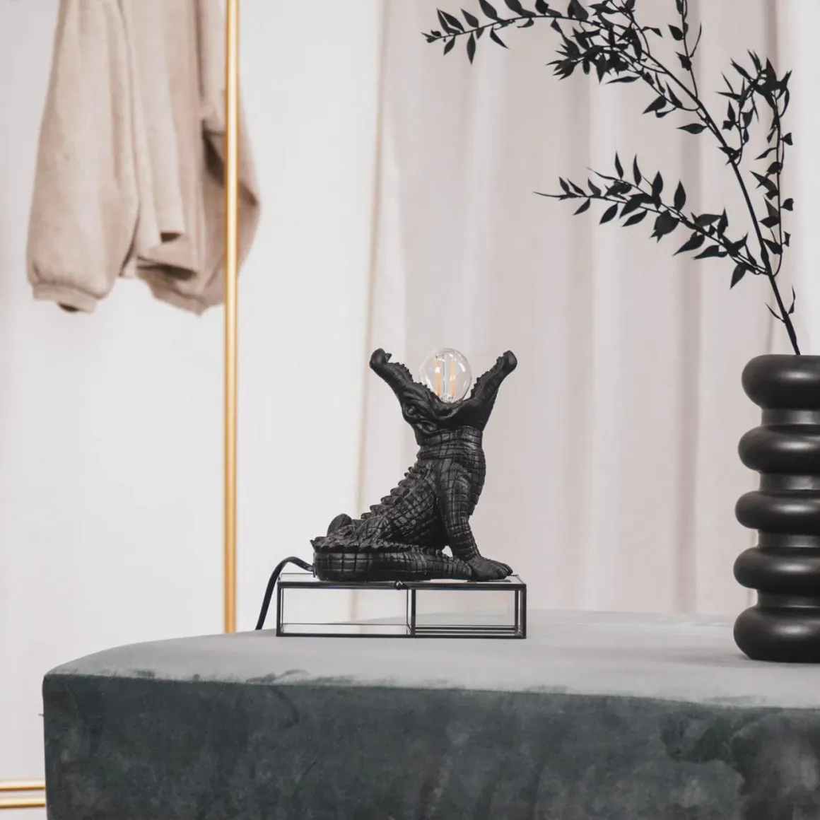 Hoe gaaf en uniek is deze zwarte krokodillen lamp ?