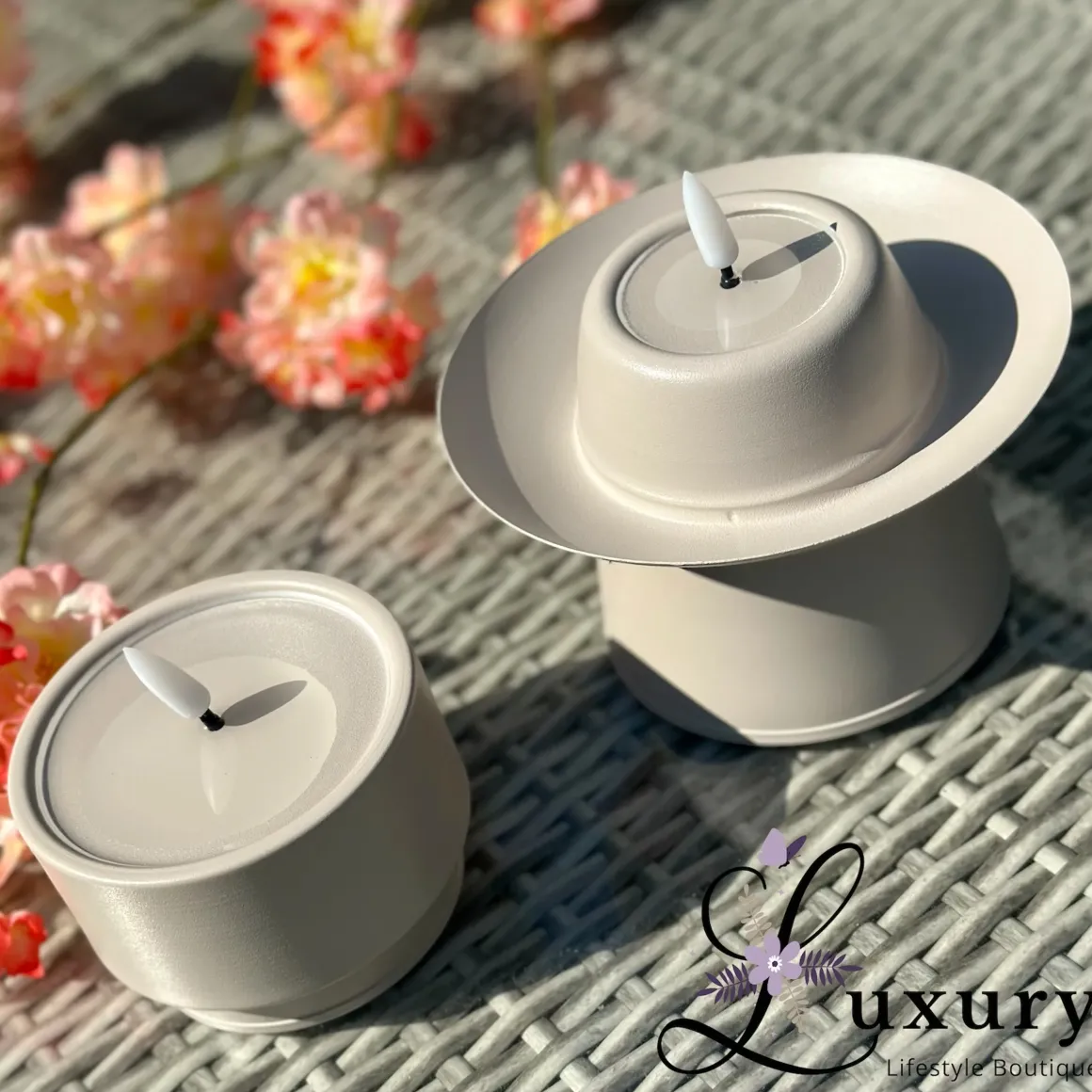 Led kaars voor buiten beige – 14x14x9cm – Mansion Atmosphere