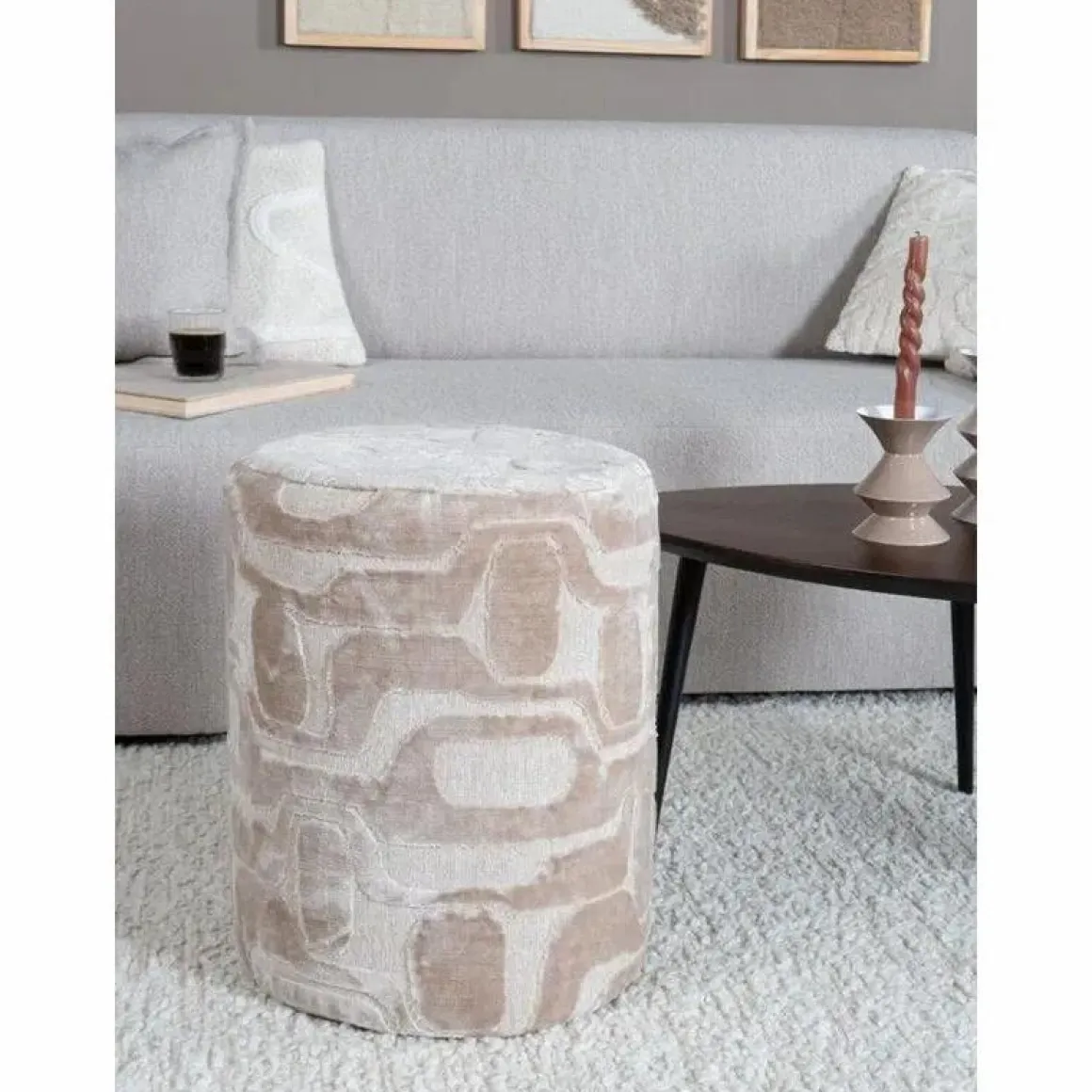Het fluweelachtige patroon van Poef Lies, zichtbaar door de hoogteverschillen, betovert elke ruimte. Deze poef is een mooie aanwinst voor het creëren van een glamoureus statement in je interieur! Het Lies design is verkrijgbaar als kussen en poef.
