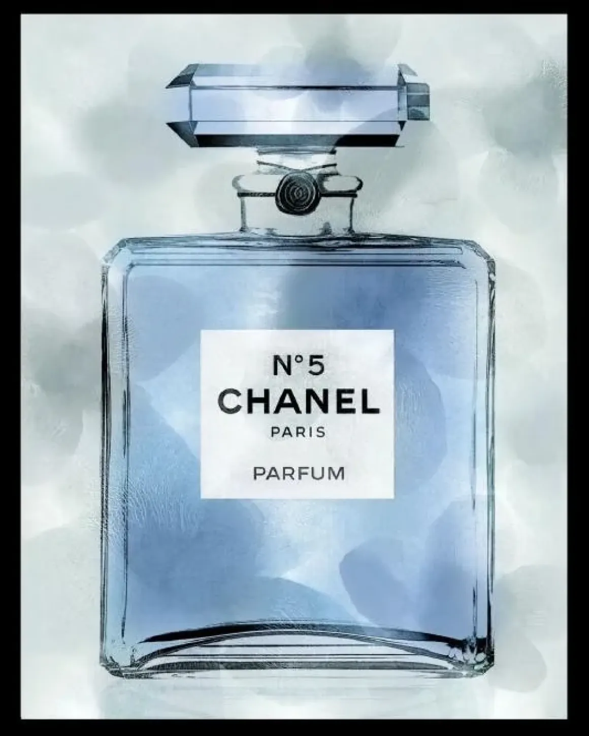 Schilderij poster met zwarte lijst parfumfles cc n5 blauw 40x50cm