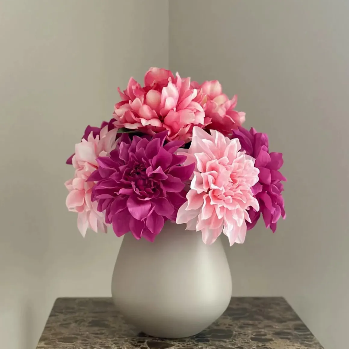 Roze en fuchsia dahlia’s geven een fris en vrolijk kleuraccent