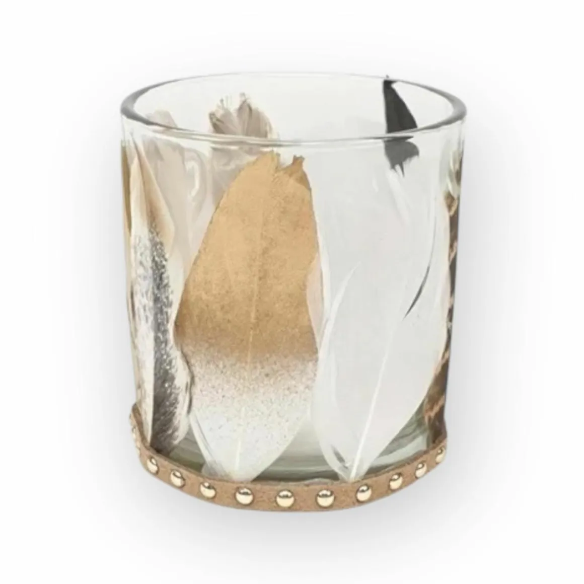 theelicht waxinelicht houder met veer ibiza home deco 7.5×7.5x8cm