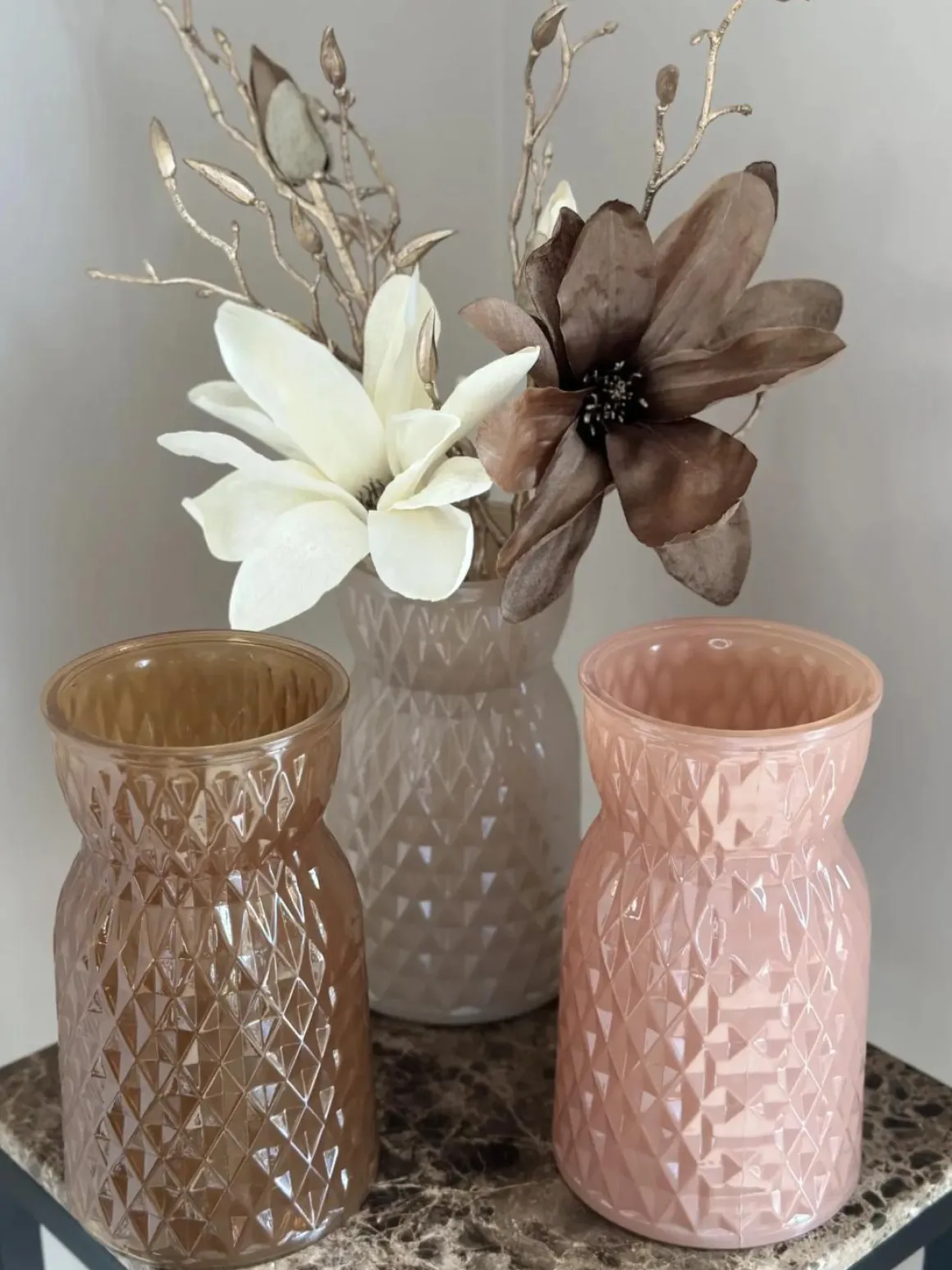 Vaas glas diamond bruin tinten 12x20cm