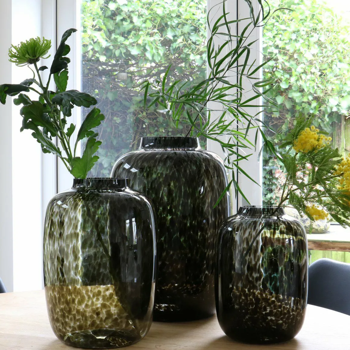 De Cheetah vaas is niet alleen een eyecatcher voor een mooi boeket. De vaas zelf is ook een echte eyecatcher. Gedroogde bloemen, takken of pluimen van riet versterken het natuurlijke en duurzame uiterlijk van de mondgeblazen Cheetah-vaas.
