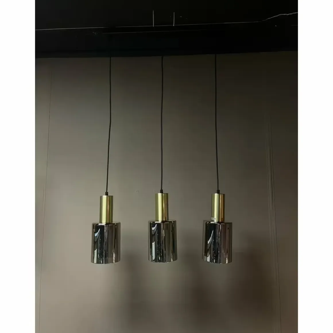 De Vilmaris Hanglamp bestaat uit 3 smoke glazen kelken. Het glas is van donker glas, hierdoor geeft dit een warme sfeer wanneer deze aan staat. In combinatie met warme lichten wordt deze lamp een ware eyecatcher in huis. Plaat 58×6 cm Glazen 17×14 cm Kabels (Verstelbaar tot) 120 cm Voor deze lamp zijn lampen met een E27-fitting geschikt. Maak je lamp compleet door de bijbehorende lampjes te bestellen.