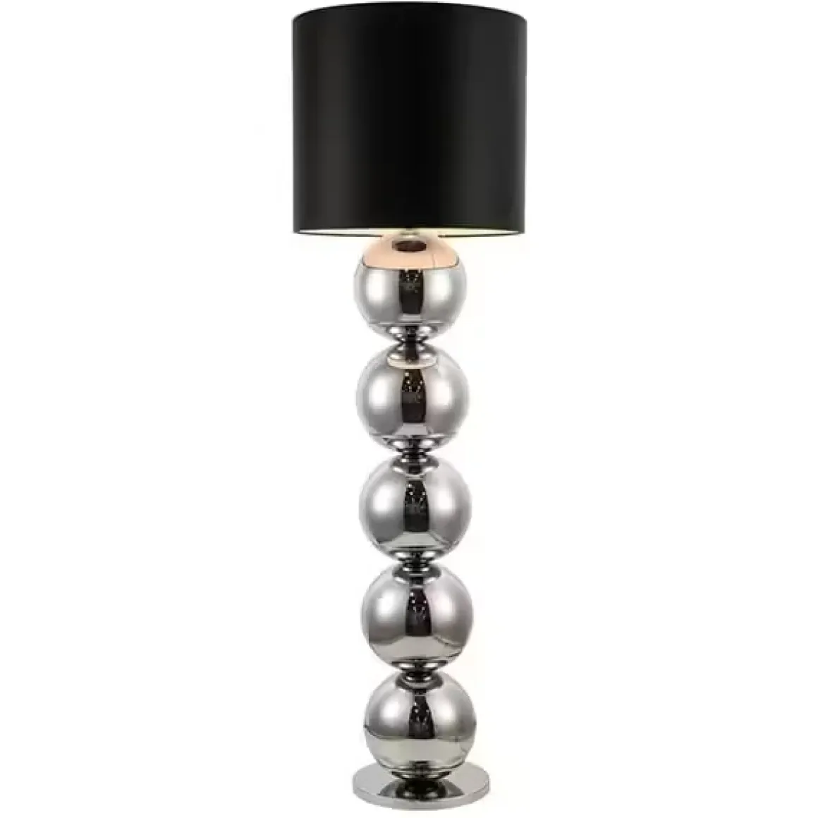 De XL Bollamp – Chroom bestaat uit 5 metalen bollen. Het model is ca. 170cm met kap. De lamp wordt geleverd met een satijn zwarte kap.De afmeting van de lamp vind je onderin: Lengte 50cm Breedte 50cm Hoogte 165cm Voor deze lamp zijn lampen met een E27-fitting geschikt. Maak je lamp compleet door de bijbehorende lampjes te bestellen. Deze kan je vinden onder het kopje Lampen > Lampjes.